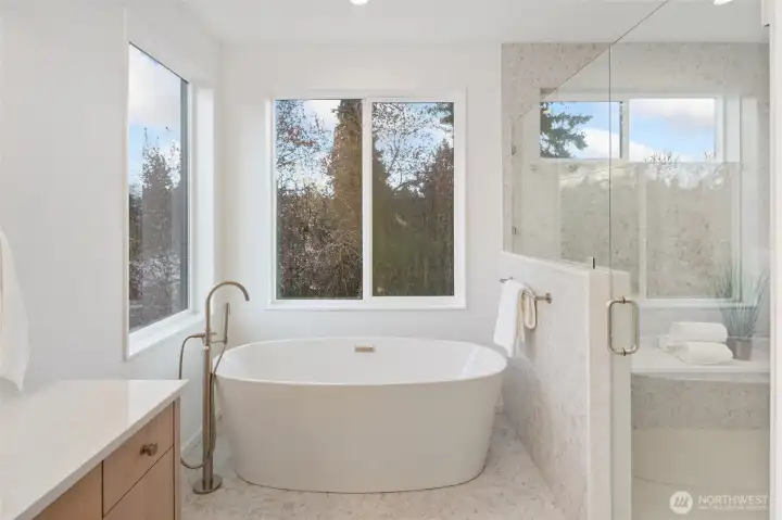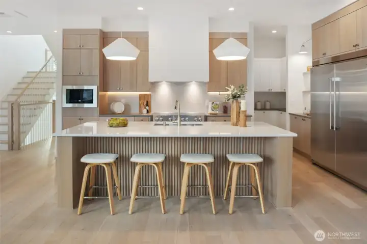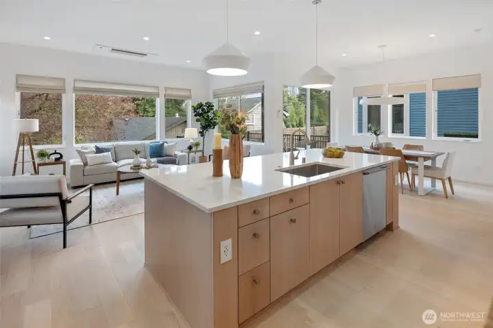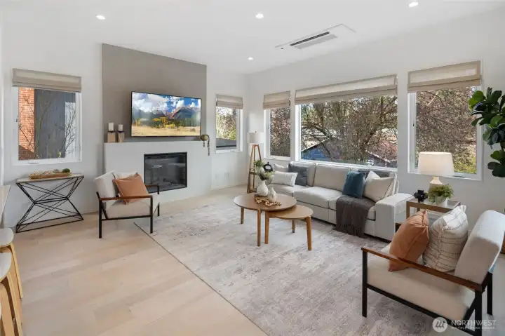 Completed in 2024, this refined Ravenna residence pairs elevated design with a highly functional, light-filled layout. The main level is anchored by a beautifully appointed kitchen with a butler’s pantry, flowing seamlessly into expansive living and dining spaces designed for both everyday living and effortless entertaining. Large windows and a connection to the deck create a natural extension of the home, blending indoor and outdoor living. Upstairs, the primary suite offers a true retreat with a spa-caliber bath and an oversized walk-in closet. Two additional bedrooms, a full bath, dedicated laundry, and a versatile loft provide flexibility without compromising on comfort or style. The lower level is thoughtfully finished with a spacious rec room, guest suite, full bath, and a private office, ideal for work-from-home or hosting, plus direct access to a patio for added livability. Set on a quiet, tree-lined street with a two-car garage, this home is moments from Ravenna’s best cafés, parks, and top-rated schools, with convenient access to light rail, U-Village, I-5, 520, and 99.