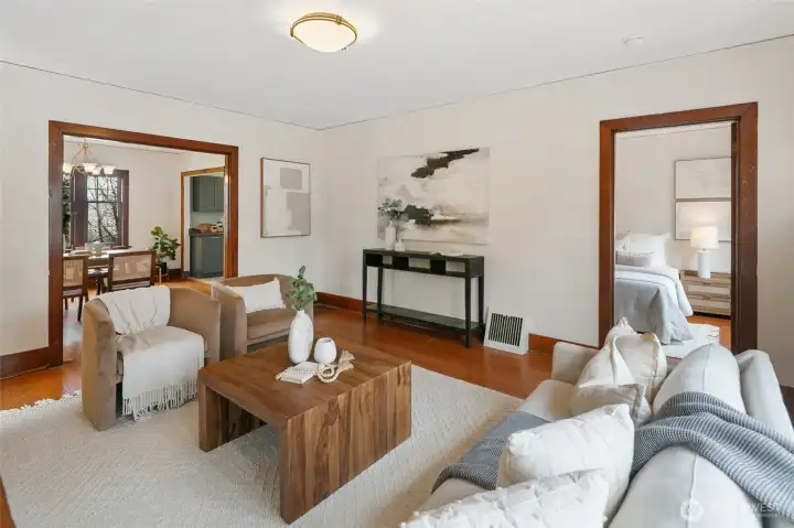 Tucked along a quiet street in the highly desirable Mt. Baker neighborhood, this charming Craftsman seamlessly blends original character with thoughtful modern upgrades. Classic details like original windows, a cozy fireplace, and elegant crown molding preserve the home’s timeless appeal, while updates throughout ensure comfort and peace of mind. Fully remodeled kitchen with all new appliances. A second bathroom has been added downstairs, and major system improvements, including mini-splits for efficient heating and A/C, an upgraded electrical panel, and the complete removal of knob-and-tube wiring, offer turnkey convenience. The inviting picket-fenced front yard is low maintenance and ready for your personal touch, while the adjacent greenbelt provides a rare sense of privacy and tranquility. Ideally located just moments from Bradner Gardens, Light Rail access, Downtown Seattle, Bellevue, and the vibrant amenities of Mt. Baker, this home offers the perfect balance of charm, function, and location.