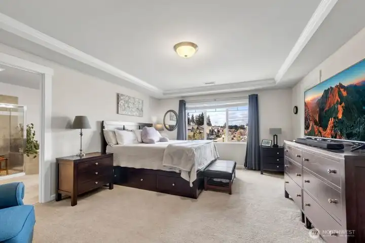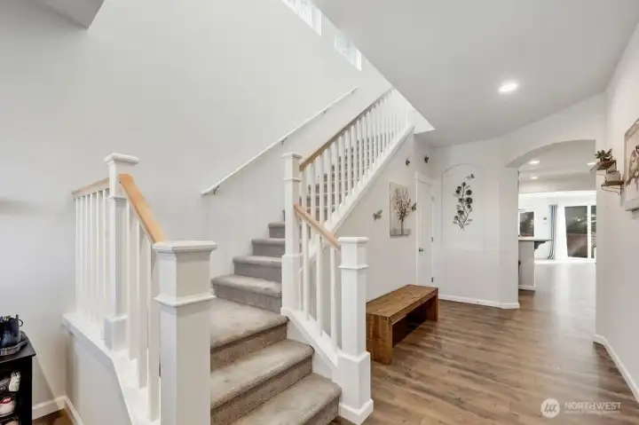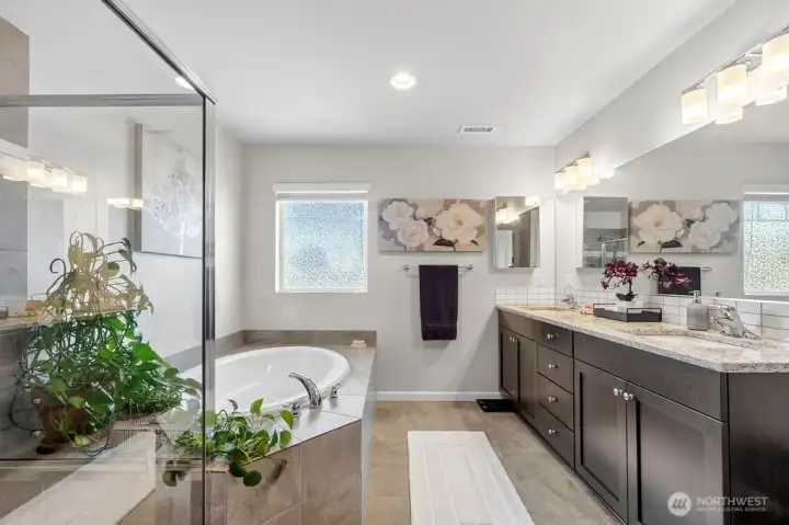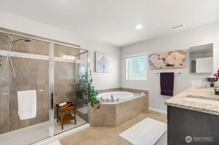 Move-in ready 5-bedroom, 2.75-bath home in Puyallup backing to a private greenbelt with no rear neighbors and ideally positioned on a corner lot next to trail access. This spacious home offers a versatile layout, including a main floor bedroom with walk-in closet and full bath, perfect for guests or multi-generational living.Upstairs, a large loft overlooks the peaceful greenbelt, creating a flexible space for a media room, office, or play area. The expansive primary suite features two walk-in closets, a luxurious 5-piece bath, granite countertops, and a glass-enclosed shower.The kitchen is designed for both everyday living and entertaining with granite countertops, stainless steel appliances, a 5-burner gas stove, and generous counter space. Enjoy year-round comfort with a heat pump and the convenience of a tankless hot water heater for continuous hot water.Step outside to a fully fenced, beautifully landscaped backyard featuring a patio and flagstone pathway—perfect for relaxing or hosting gatherings. This home offers the rare combination of privacy, space, modern upgrades, and access to nature, all within a desirable Puyallup neighborhood close to schools, parks, shopping, and commuter routes.
