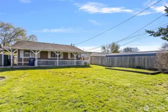 Charming rambler featuring 3 bedrooms and 1 bathroom, set on a spacious, fully fenced yard with a covered patio, ideal for entertaining year-round in the Pacific Northwest. Conveniently located near I-5, Fern Hill, Tacoma Mall, Downtown Tacoma, and the McKinley neighborhood. The home offers a well-sized kitchen with an eating area, granite countertops, and a brand-new stainless steel refrigerator. Stay comfortable with an AC mini-split system, and enjoy the added value of an included washer and dryer. A newer hot water tank and ample storage can be found in the enclosed garage. The garage is partially converted, providing flexible space for a gym, storage, or bonus room, with the option to easily revert it back for parking. Alley access adds extra convenience for storing vehicles, recreational toys, or even an RV.