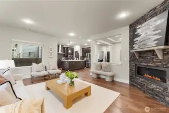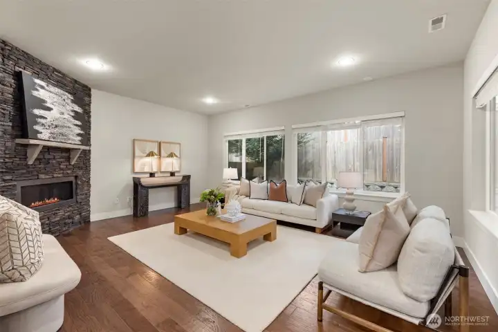 Tucked into the highly sought-after Silver Peak Estates, this beautifully maintained home—built in 2017—offers the comfort of newer construction with modern finishes and a thoughtfully designed layout.A covered front porch leads into a bright foyer with engineered hardwood floors that extend through the main level. The open-concept layout connects the living, dining, and kitchen areas, creating a space that feels both functional and inviting. The living room is anchored by an oversized gas fireplace with a full-height tile surround, while added windows bring in great natural light. The kitchen features quartz countertops, a stylish backsplash, and a layout that works well for both daily living and entertaining.Upstairs, a generous loft provides a flexible second living area—ideal for a media room, home office, or additional living space. The layout offers versatility and can easily adapt to a variety of needs over time. The primary suite includes a walk-in closet and a spacious 5-piece bath.Additional highlights include central A/C, smart home features, and more. Conveniently located just minutes from Alderwood Mall, Costco, Whole Foods, with easy access to I-5 and nearby transit options, including the Lynnwood Light Rail station for commuting to Seattle and beyond.