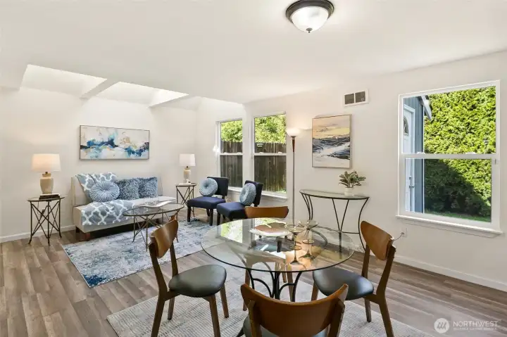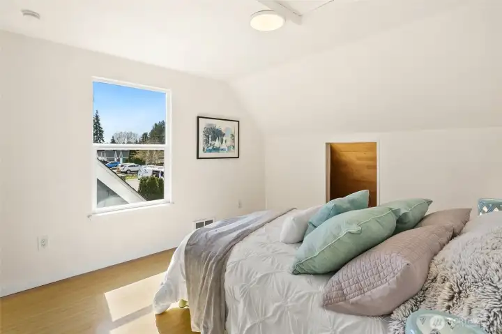 Charming, move-in ready Everett home offering flexibility, functionality, and an unbeatable location! A standout feature is the detached 264 sq ft ADU—complete with a 3/4 bath, private entrance, and dedicated parking—perfect for a mother-in-law suite, guest space, home office, or even a versatile shop/studio. Inside, enjoy a bright and inviting living room with skylights that fill the space with natural light, seamlessly connected to the kitchen with easy access to the backyard—ideal for everyday living and entertaining. The main level features a spacious bedroom and full bath, while upstairs offers two additional bedrooms and a second full bathroom. Step outside to a fully fenced yard with patio space, perfect for gatherings, pets, and gardening. Conveniently located with quick access to I-5, Boeing, Paine Field, shopping, and dining—this home offers both comfort and exceptional convenience.