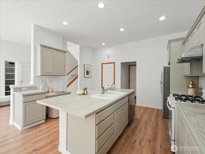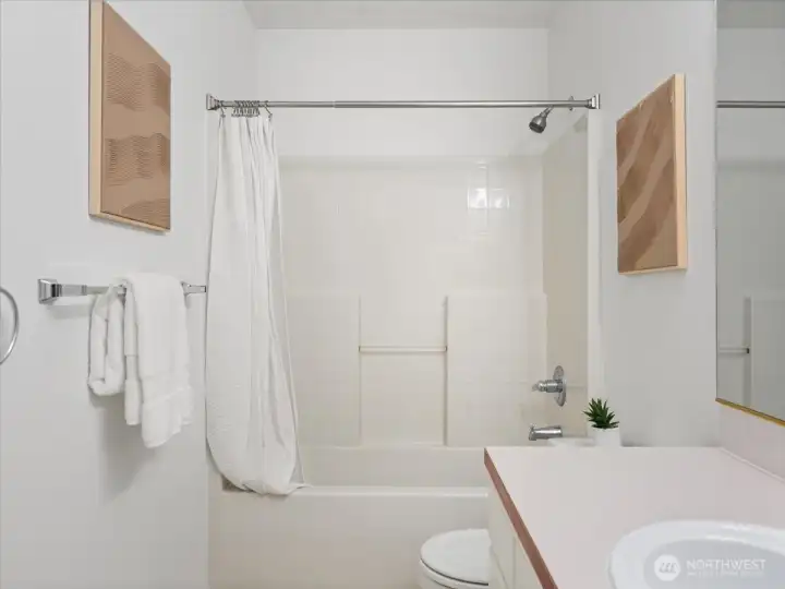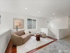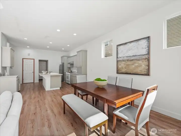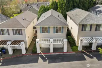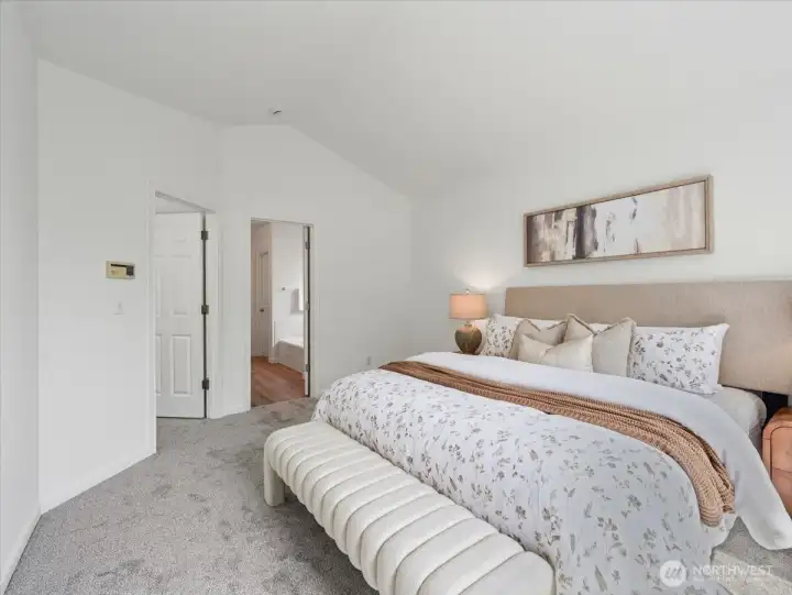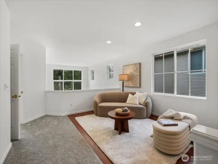 Set within Bellevue’s quiet Saratoga community, this beautifully refreshed home offers the rare combination of privacy, natural light, and unbeatable convenience. Just minutes from The Marketplace at Factoria, T&T Supermarket, I-90, and I-405, it provides easy access to Bellevue’s major employment hubs while feeling tucked away from the rush. Inside, a dramatic double-height living room and soaring window wall flood the main level with light, while the open kitchen, dining, and living spaces create seamless everyday flow. Brand-new carpet, fresh interior paint, and new main-level flooring add a crisp, move-in-ready feel. Upstairs, all three bedrooms are generously sized and bright, complemented by an open loft that works beautifully for office, study, or play. A smart, efficient floorplan makes the most of every square foot, and the easy-care yard offers low-maintenance outdoor living in a peaceful setting. Served by Woodridge Elementary, Chinook Middle, and Bellevue High.