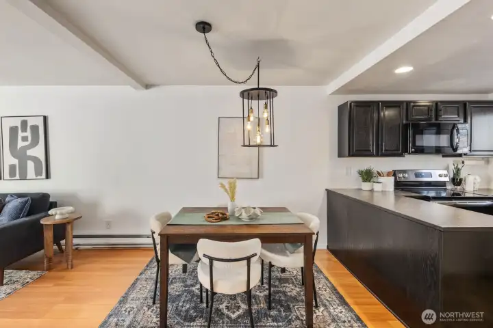 Welcome to this charming townhome-style condominium in desirable South Everett! This well-maintained home features a bright, open living and dining area—perfect for relaxing or entertaining—along with thoughtful updates including a new dishwasher, new water heater, updated light fixtures, and a smart thermostat. The upper-level primary suite offers a full bath with double vanity, while the second bedroom is filled with natural light and includes a spacious walk-in closet. Community amenities include a clubhouse, sport court, play area, and dog park. Ideally located near Boeing, shopping, and with easy highway access, this home offers the perfect blend of comfort, modern updates, bright living space, and effortless accessibility.