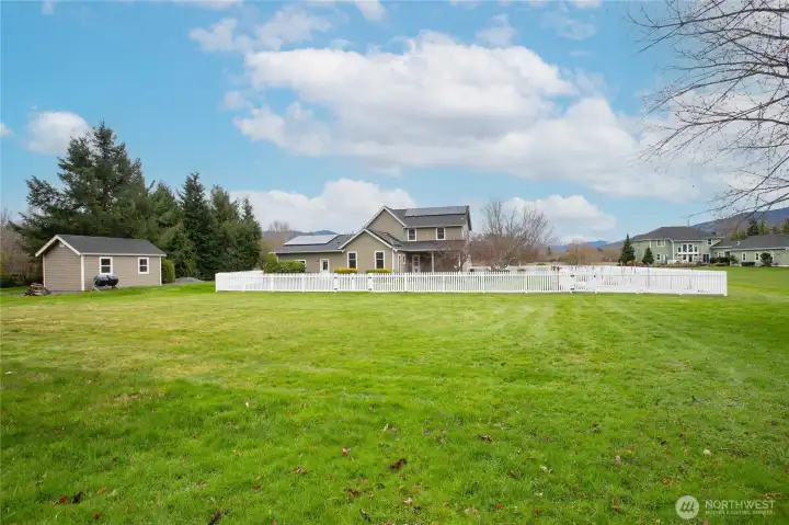 This home ticks all the boxes on your dream house list. A stately looking home situated perfectly on 1.9 acres. The grounds surrounding the home are beautifully landscaped. A tidy fenced in garden area with raised beds are ready to plant and enjoy. The mature landscape blooms and changes with the seasons giving one something to look forward to year-round. The ample front porch is perfect to sit and watch the sun come up over Mt. Baker with fantastic light shows in the morning and sunset's stunning reflection on the mountain in the evening. The kitchen is perfect for entertaining, cooking to your heart’s delight, or just contemplating life. There is plenty of elbow room and counter space. The elegant, modern farm style flows throughout the home feeling warm and comfortable with the touches of luxury. A large family room looks out to the view of the mountain and is as welcoming and relaxing for one as it is for a large group. The primary bedroom is on the main floor with an elegant ensuite bath including both a large tiled shower and a claw foot tub! The upper level includes three more bedrooms and a full-bath. One of the upper bedrooms is large enough to serve as a guest room and workout space, or second family room. Use it as you want! The final icing on the cake is a generous three-car, attached garage with option for an e-charging station, solar panels and a shed for yard tools and mower. Look no further, here is your dream home. Come get it!