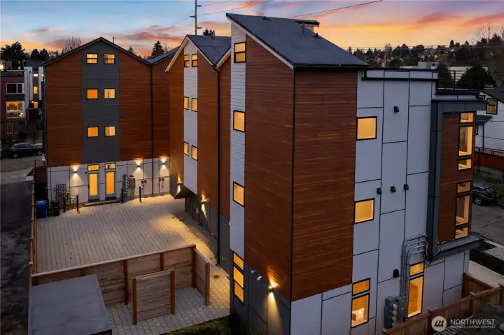 Move-in ready! Striking 4-Star Built Green home by MRN Homes, perfectly positioned on a peaceful tree-lined street in the heart of Ballard. Thoughtfully designed for elevated modern living, this light-filled home offers a flexible floorplan, with abundant windows that pour in natural light from every angle. Soaring ceilings, luxe vinyl plank floors & an airy open-concept layout create a warm yet refined atmosphere. The stylish kitchen showcases sleek quartz countertops, premium appliances, designer finishes & effortless flow—ideal for entertaining or unwinding at home. The top-floor primary suite is a personal retreat with a spa-like bath. A versatile 2nd bedroom offers endless flexibility, perfect for guests, a work-from-home office, or home gym. Enjoy the rooftop deck, ideal for sunset gatherings, morning coffee, or simply soaking in Ballard’s laid-back charm. Complete with A/C and convenient designated parking with EV charging. With a Walk Score of 92, you’re just moments from the iconic Farmers Market, beloved cafés, acclaimed dining, boutique shopping, parks, and transit. An exceptional opportunity in one of Seattle's most sought-after neighborhoods. Not a Condo + No HOA Dues!