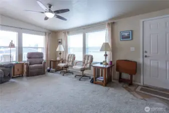 Very Rare, View Mobile home with southwesterly water views in Bayview. This 2 bedroom 1.75 bath home is 1,344 sqft, open concept living/dining and kitchen space. Abundance of windows to enjoy the views. Primary bedroom ensuite bathroom generous closet. Spectacular views, sunsets, water views, farmland, from living room, kitchen, front sitting room and covered front entry with ramp. Many custom extra storage and work shop. Quiet for nature lovers, it’s just a short stroll across the street to the picturesque Bayshore Trail, ideal for walking or cycling along the waterfront. Covered front porch with sunset views. Gravel parking for 3 cars. 55+ Community park. This has all the right features for a water view home. Park approval required.