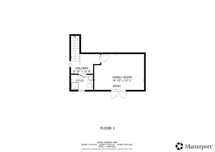 Full bath in lower level dedicated to thrid bedroom/study.