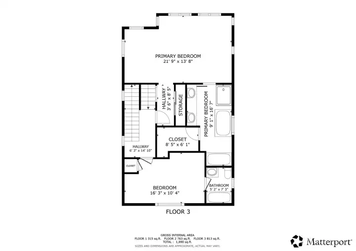 5-piece bath in primary suite with walk-in closet.
