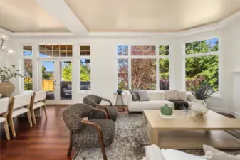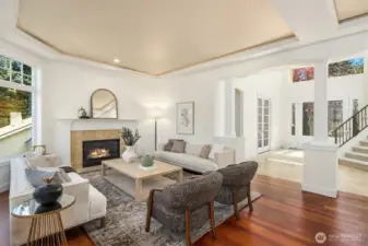 Meydenbauer — Bellevue’s most coveted address — combines stunning lake views, effortless walkability, and sophisticated living in one unbeatable package. Step inside to the gem you've been waiting for. A dramatic curved wrought-iron staircase welcomes you into a two-story foyer, setting the stage for airy, open living spaces designed for today’s lifestyle. Expansive windows and soaring ceilings bathe the home with natural light, connecting the living and dining areas to a sleek chef’s kitchen featuring stone counters, designer cabinetry, and top-tier stainless appliances. French doors open to a private covered patio with a fireplace and built-in BBQ — perfect for relaxed nights in or easy entertaining. Upstairs, the primary suite captures iconic views of Lake Washington and Bellevue’s skyline, with a cozy fireplace, walk-in closet, spa-style bath, and private deck. Three additional bedrooms share the upper level, while the daylight lower level highlights flexible space for a home theater, gym, or guest suite — plus a wine cellar for good measure. Just steps from Main Street dining, lakefront parks, and Bellevue’s best shopping — this home pairs privacy and style with the ultimate in convenience. And yes, it’s in the award-winning Bellevue School District.