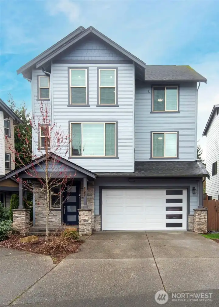 Beautifully appointed 3-story detached home in an intimate 5-home community, offering the perfect blend of comfort, style, & low-maintenance living. Thoughtfully designed w/ 5 spacious bedrooms. The main level features a bright and open great room with a sleek, contemporary gas fireplace, powder room & additional storage. Kitchen is equipped with quartz countertops, a large island, soft-close cabinetry, & all appliances included. From the main level enjoy seamless indoor-outdoor living with access to the back deck & a low-maintenance turf yard. Up to the second floor find additional living room & three well-sized bedrooms, a full and a 3/4 bathroom providing comfort and convenience for household members or guests. On the third floor, discover a private primary retreat boasting an expansive walk-in closet w/ a second laundry hook up & a well-appointed en-suite bathroom. This level also includes an additional half bathroom, bedroom and a versatile bonus living space with wet bar ideal for a home office, lounge, or flex area. Yes, this home has three living room areas. Additional highlights include A/C, a tankless water heater, & fully wood-wrapped windows. The home also offers a 2-car garage with a pedestrian door. Located within the highly regarded Mukilteo School District and and served by the nationally award-winning Alderwood Water District. Don't let the address fool you. This home is situated between the wonderful communities of Edmonds and Mukilteo.