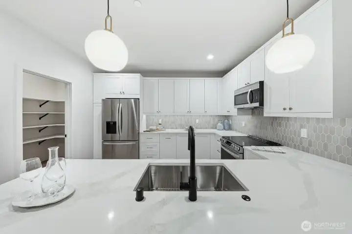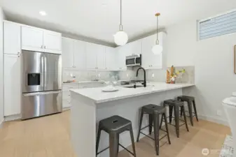 Stunning new construction home offering a warm blend of modern elegance and timeless luxury. This 2 bedroom 2.5 bath home exudes warmth and sophistication. The designer curated interior boasts high end appliances, quartz counters. with custom cabinets. Spacious living room & dining w/ fireplace & half bathroom on main floor. Upstairs features vaulted ceilings, elegant primary suite with "spa like" bath and heated floors. Patio and a fully fenced yard create an inviting oasis for entertaining or quiet relaxation. With 2 off street parking spots.