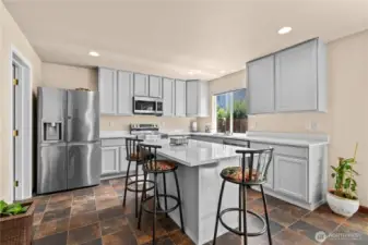 Set on a quiet cul-de-sac minutes from Silver Firs and Mill Creek Town Center, this 5-bedroom, 2.5-bath home offers 2,670 sq ft of well-maintained living space with meaningful updates throughout. The refreshed kitchen features new appliances and a large pantry, opening directly into the family room — anchored by a tile-surround gas fireplace. Formal living and dining rooms add flexibility for everyday living and entertaining alike. Upstairs, the primary suite includes a generous walk-in closet and private bath, with four additional bedrooms providing space for guests or a home office. Updated bathrooms add to the move-in-ready appeal. Outside, a patio opens to a fully fenced backyard — a clean, private space ready for summer. New south-facing windows bring in natural light throughout the main floor, and fresh interior paint and updated flooring give the home a clean, updated feel from the moment you walk in. The 3-car garage offers room for vehicles, storage, or a workshop, and new crawl space and attic insulation means efficiency and comfort are taken care of. Pre-inspected and move-in ready.