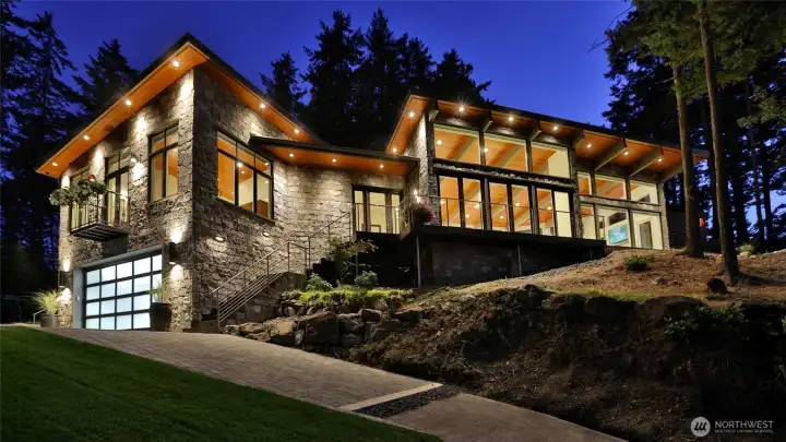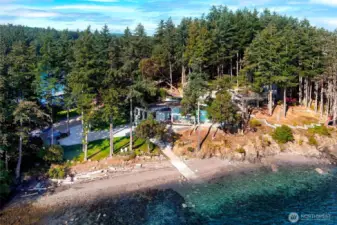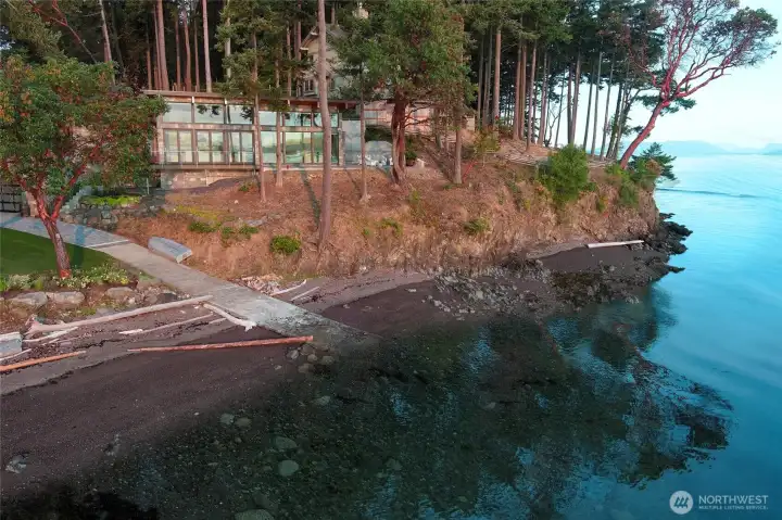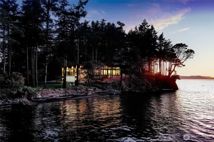 Newly constructed modern waterfront residence with unparalleled panoramic 180° views of the Salish Sea. Situated on a rare low bank 0.53 acre lot this is the last home permitted to be built within the 30 foot ordinary, high water mark in San Juan County. Secluded beach, mooring buoy and rare boat launch. 16’ soaring VG fir ceilings, gourmet chefs kitchen, and spa like primary suite with a steam shower. Fossilized limestone, travertine, and European wide plank oak flooring. Granite stone exterior with Roman paver driveway and patio. Tucked at the end of Davison Head and minutes to Roche Harbor, this ultra secluded half acre is a rare and refined haven. Whether boating, or watching wildlife, this is modern waterfront living.