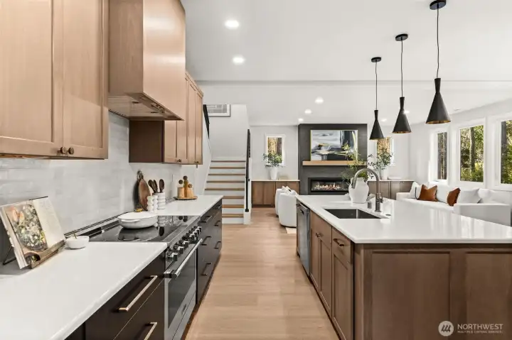 Escape the hustle of city living in this stunning, brand new construction Fox Island custom build, just 5 minutes from the Fox Island Bridge! Thoughtfully designed from top to bottom, this 4-bedroom, 3.25-bath home with dedicated office sits on nearly a full acre across two parcels with no HOA. The main level showcases soaring ceilings and an open-concept layout ideal for entertaining, featuring a chef’s kitchen with expansive counter space, oversized island with seating, butler’s pantry with wine fridge, and seamless flow into the living area with built-ins and statement electric fireplace. Upstairs, spacious bedrooms offer privacy and comfort, including two primary suites. The main primary retreat features a spa-inspired 5-piece bath with tiled floors, oversized walk-in shower, freestanding soaking tub, and dual vanities. An oversized 2-car garage with tall ceilings provides ample storage and flexibility. Enjoy island living with space, privacy, and convenience — all just minutes from town!