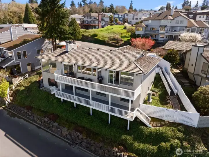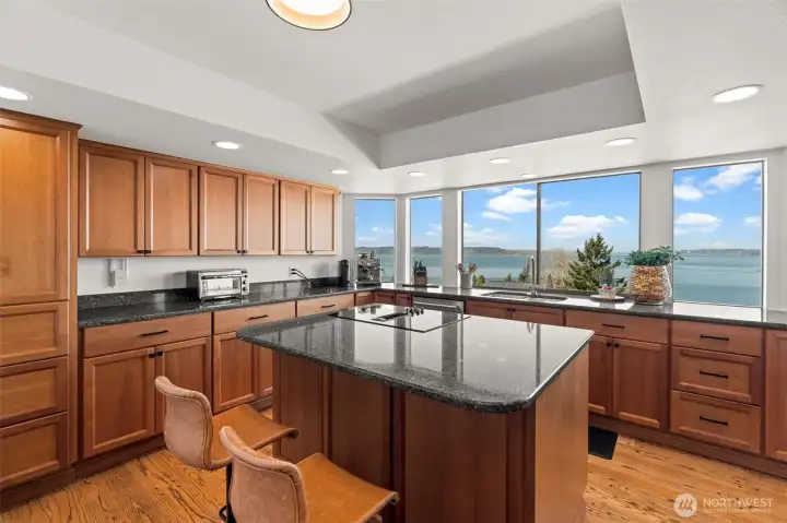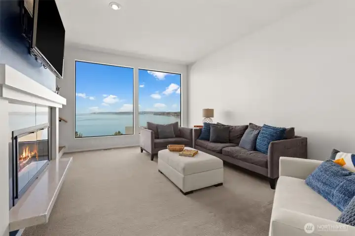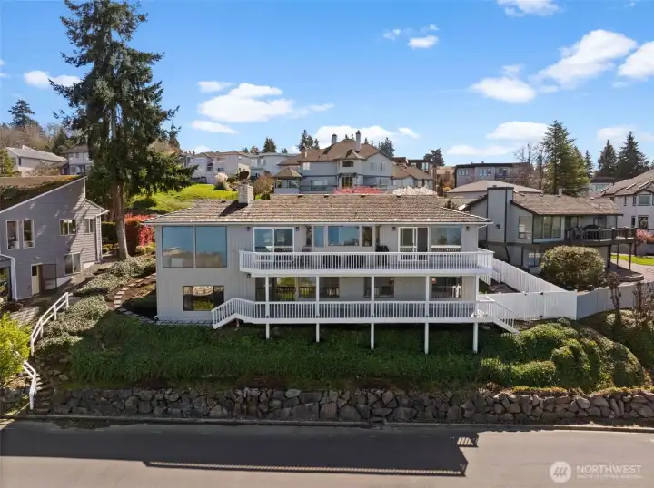 Modern Perfection Meets Iconic Views. Experience the pinnacle of Mid-Century Modern living in this immaculately maintained home. Blending sleek aesthetics with high-end upgrades including a brand new HVAC system. Walls of glass frame breathtaking views, flooding the open-concept interior with natural light and highlighting the clean lines and designer finishes throughout. Every mechanical detail has been perfected and built to last for the next chapter of this beautiful home. The kitchen actually makes you want to spend time in front of the sink washing dishes so you can gaze across the expansive views of Puget Sound. The sunsets are breathtaking while the upgrades make your culinary aspirations come to life; brand new premium double oven and state-of-the-art refrigerator, complemented by new light fixtures and fresh paint throughout. Retreat to your primary bedroom with en-suite boasting a luxurious light filled soaking tub and custom closet shelving. The exterior shines with a new glass-inlay front door, fresh trim paint, and a freshly sealed driveway. Strategic exterior lighting sets this home apart, showcasing pristine mature landscaping all easily maintained with a update sprinkler system. The backyard is a private oasis with new fencing and a unique custom dog ramp for your four-legged friends. A new garage door opener and new tile flooring, even the garage is a masterpiece. Look out at those stunning views and enjoy a home where every detail is already done for you.