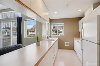 Welcome home to easy, stylish living. This well-kept 1-bed, 1-bath townhouse-style condo is nestled in the peaceful Lakes community and offers comfort with a modern vibe. The open-concept layout flows effortlessly to your private deck—perfect for morning coffee or unwinding at the end of the day. The spacious primary bedroom features a walk-in closet, while the cozy living room is anchored by a wood-burning fireplace. Recent updates include new windows and a new garage door opener with remotes for added convenience and peace of mind. You’ll also appreciate the attached 1-car garage with extra storage. Community amenities include a clubhouse with entertaining space, sauna, and fitness room, and HOA dues cover water and sewer. Enjoy scenic lakes, walking trails, and nearby parks, all just minutes from I-5, 167, light rail, shopping, and dining.