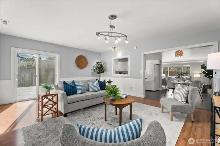 Thoughtfully updated 3-bedroom, 1.75-bath ranch-style home offering efficient single-level living in a well-connected neighborhood. Hardwood floors and an open floor plan create a bright and functional main living space. The kitchen features white maple cabinets, quartz countertops, and stainless steel appliances, complemented by bathrooms finished with custom tile work and a remodeled hall bath. Sliding glass doors extend the living area to an oversized, recently painted deck—ideal for outdoor dining and gatherings. The level, fully fenced yard includes a dog run and storage shed, while RV parking and two dedicated parking spaces add flexibility. Additional updates include newer insulation and fresh interior paint. Pre-inspected for buyer confidence. Located on a quiet street just a block from Ridgecrest Elementary and within walking distance to parks, the library, supermarket, and North City shopping with restaurants, coffee, and entertainment, plus easy access to key commuting routes.