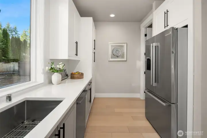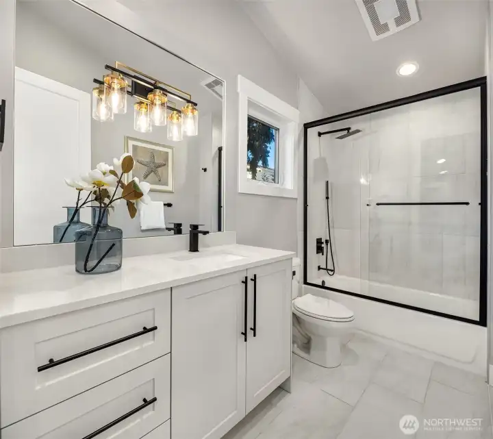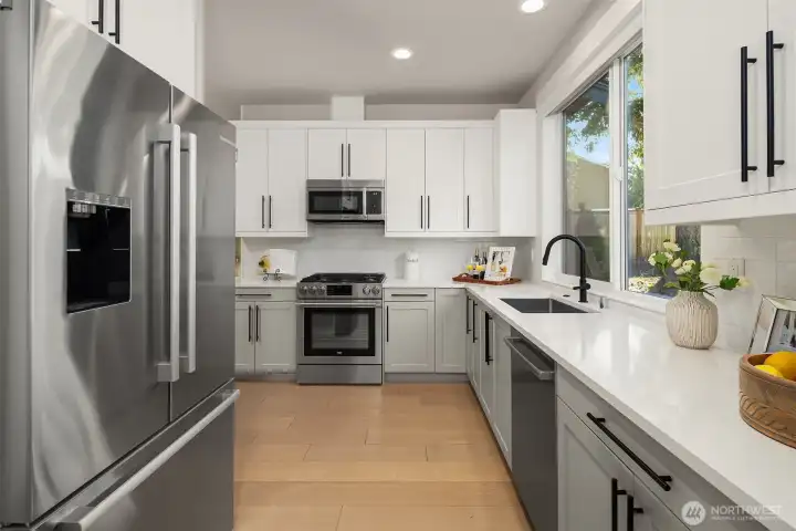 Better-than-new detached home in the heart of Kirkland offering luxurious, modern living in a prime location. This beautifully designed 3-bedroom, 2.25-bath residence features an open-concept floor plan filled with natural light and upscale finishes throughout. The gourmet kitchen is a true centerpiece, showcasing top-of-the-line appliances, sleek cabinetry, and generous prep space—perfect for everyday living and entertaining. Upstairs, the spacious primary suite boasts a stunning bath retreat and an oversized walk-in closet. A fully fenced yard provides privacy and room to relax or host gatherings. Incredible value for newer construction in such a sought-after location. Located in the award-winning Lake Washington School District, just minutes to Totem Lake Village shopping and dining, with easy access to I-405 and major employers including Meta, Microsoft, and Google.
