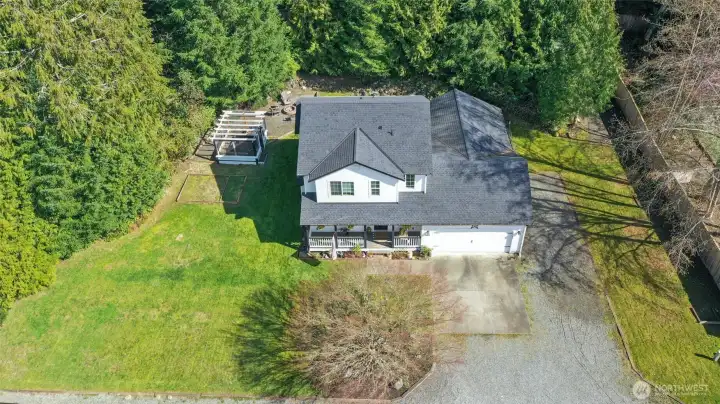 Tucked among mature evergreens, this move-in ready home offers the kind of privacy, space, and everyday functionality that’s getting harder to find. From the moment you arrive, the covered front porch sets the tone — a welcoming place to slow down and enjoy the setting. Inside and out, the home is designed for comfortable living with room to spread out, entertain, and make it your own. The backyard is where this property truly shines. Multiple outdoor spaces create flexibility for how you want to live — whether it’s gathering around the fire pit, enjoying the open lawn, or utilizing the enclosed garden structure for hobbies, storage, or future possibilities. The lot provides a rare combination of usable space and natural privacy, surrounded by established trees that give the property a peaceful, tucked-away feel without sacrificing accessibility. Additional features include a spacious driveway, 2-car garage, and side yard access with room for extra parking, recreational vehicles, or equipment. If you’ve been searching for a home that offers more than just square footage — something with space, flexibility, and a true Pacific Northwest setting — this one delivers.