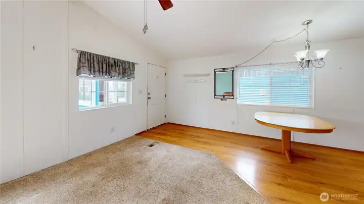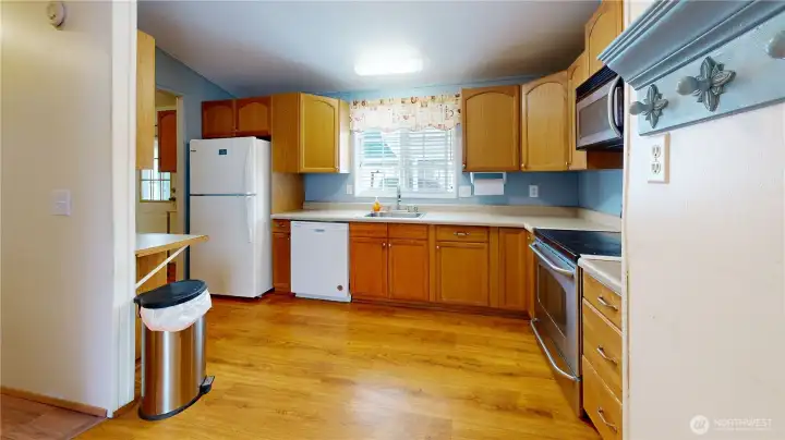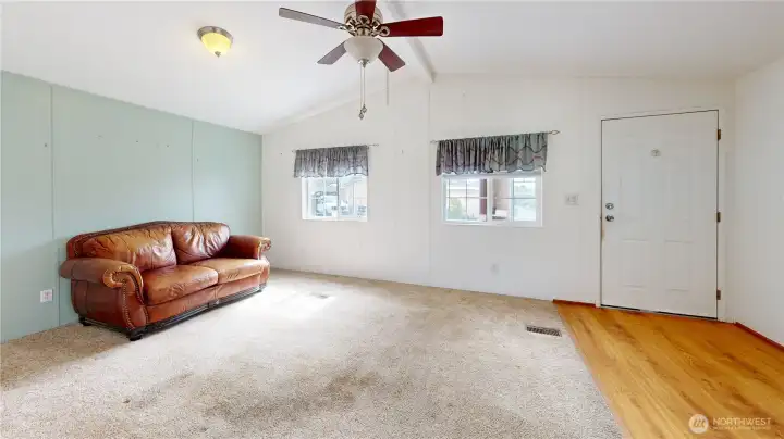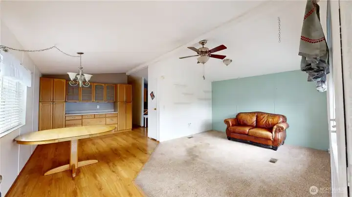 Very nice 3 bedroom, 2 bath mobile home, built in 1993. This park is for all ages. Monthly space rent is currently only $840/mo & includes sewer and garbage. This is one of the lowest space rents in Mount Vernon! Enter into a small covered entry room for your coats & shoes, then into the carpeted spacious living room with ceiling fan. Vinyl windows throughout home. Dining area has built-in hutch cabinet for lots of storage. Kitchen offers Stainless Steel electric flat top range, Stainless Steel microwave, newer dishwasher & fridge. New flooring in hall & bath. Primary bedroom has attached bath, which has recently been nicely remodeled with a newer walk-in shower. Electric FA heat, laundry room off the kitchen with a door to a large storage room w/ access to the outside. Brand new ramp plus extensive work has recently been done to the siding as well as newer exterior paint. A spacious 1 car covered carport plus a detached large outbuilding/shop w/ power is all included. Located on the hill, close to grocery stores, schools & medical facilities. Plus it has easy access to I-5 as well as downtown Mount Vernon. This one won't last!