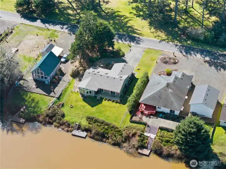 Waterfront Living Meets Coastal Lifestyle! Imagine mornings on the water, afternoons on the golf course, and evenings with crashing waves along 6 miles of beach—the perfect serene coastal lifestyle. Welcome to your coastal retreat in Ocean Shores, where relaxed beach living meets everyday comfort. Set on over 1/4 ac lot of nearly 90' of canal waterfront, this well-maintained 2bed/1.75ba/2-car attached garage single-story home offers a rare blend of space, privacy, and scenic surroundings. The open layout with vaulted ceilings is filled with natural light from large windows and skylights, perfectly framing tranquil canal views. The spacious kitchen features upgraded countertops and appliances. A cozy fireplace anchors the living space, while a ductless heating/cooling system ensures year-round comfort. Step outside to your private waterfront setting with a deck overlooking the canal—perfect for morning coffee, outdoor dining, or entertaining. A small dock makes launching a kayak or paddleboard easy, while the expansive yard offers space to garden, play, or simply relax—often with visits from local deer adding to the peaceful, natural setting. Generator-ready for added peace of mind. Living in Ocean Shores means more than just owning a home, it’s a lifestyle. As part of the Ocean Shores Community Club, you’ll have access to year-round recreation, in/outdoor pools, hot tub, fitness facilities, parks, access to Duck Lake for boating and fishing, disc golf, playgrounds, & more.