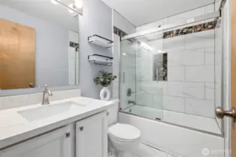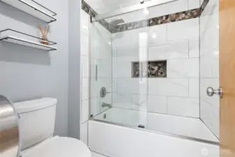 Beautifully updated charming home tucked away on a quiet cul-de-sac! A covered front porch warmly invites you in, setting the tone for the comfort and character found throughout. Inside, you'll find beautiful luxury laminate plank flooring throughout the home. Stunning living room with cathedral ceilings and a cozy fireplace. The thoughtfully designed layout includes a rare main-floor Primary Suite featuring an updated bathroom with eye-catching river rock flooring and surround. Upstairs offers a second primary suite with full bath and walk-in closet providing flexibility for guests or multi-generational living. The bright and cheery remodeled kitchen shines with quartz countertops, tile backsplash and seamless flow into the dining area and open family room - ideal for both everyday living and entertaining. New roof was installed in September, 2025. Air conditioning unit is 3 years. Step outside through the sliding glass door to the big patio complete with two built-in barbecue pits and a wrap-around deck, ready for gatherings year-round . Additional highlights include generator wiring, a fully fenced backyard featuring a dog run, Greenhouse, fruit trees and raised garden beds. Dash to the freeway! This is truly a rare find!