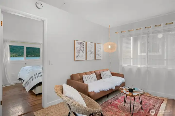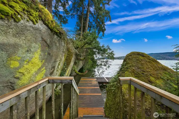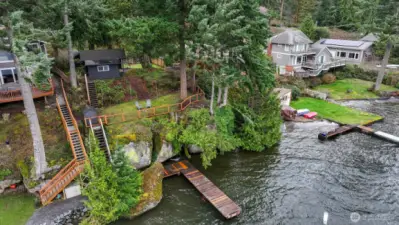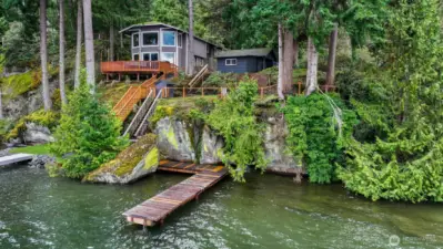 Discover this perfect Lake Whatcom waterfront escape, a charming lakefront bungalow that redefines lake lifestyle. Ideally suited for cherished long weekends, extended summer escapes, or spontaneous getaways, this private sanctuary invites you to experience lake life at a one of a kind property. Step onto the existing private dock, framed by striking natural rock outcroppings that add timeless beauty to the shoreline. Host lakeside gatherings, dock a boat, play yard games on the flat, sun drenched lawn, or simply unwind at this lakeside oasis. The one bedroom home, with living room and kitchen, offer the perfect space for summer indoor/outdoor entertaining. A large two-car garage keeps your kayaks, paddleboards, and all your lake gear effortlessly organized and ready. When not enjoying this personal haven yourself, explore the potential as a short term rental (with a conditional use permit) offering both an exceptional lifestyle and smart investment potential. A short drive to town, restaurants, and shopping but far enough apart to feel a sense of escape. A serene, private offering like this with its gentle shoreline, beautiful rock outcroppings, usable yard, and instantly grounding sense of calm are hard to find.