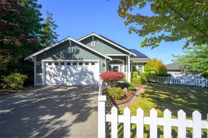 Beautifully maintained 3004 sq. ft. home ideal for multi-generational living! Main floor offers primary BR, living area, enclosed sunroom w/Mt. Baker views, office/4th BR, ¾ bath & laundry—no steps from garage or entry. Lower level includes 2 BRs, full bath & large family rm w/fireplace & patio access. Features hardwood & tile floors, walk-in pantry, pull-outs, farm sink, built-in desk & shelving, arched doorways, abundant storage, walk-in closets, picket fence & 2-car garage. Recent upgrades include solar panels, energy-efficient heat pump, newer furnace & water heater. Located on a quiet dead-end street!