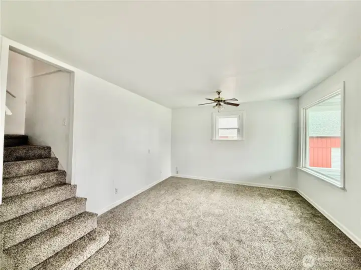1920 bungalow on fully fenced, easily maintained lot—only one block off of Main Street and all the action! Large primary bedroom and bath on the main floor, with an additional bedroom, bath, and bonus room upstairs. Main floor also features a comfortable kitchen, dining room, and living room, plus the utility room with washer/dryer hookups. A spacious, but unfinished, basement rounds out the house. New in 2025/26: composition roof, windows, front porch decking and rails, flooring, gutters, main floor bathroom vanity and toilet, appliances, ductless mini-splits, hot water heater, electric updates, and more!