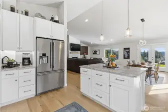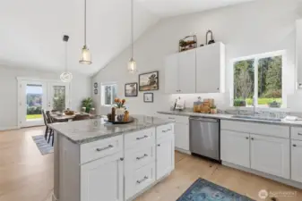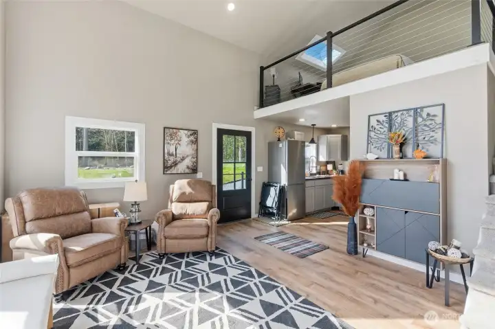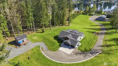 Experience the best of Pacific Northwest living on just shy of 5 private acres with breathtaking views of the Cascade Mountains and Lake Shoecraft. This single-level home offers the perfect blend of comfort, space, and lifestyle—ideal for those seeking privacy while still enjoying room for hobbies, animals, and outdoor living. Inside, you’ll find vaulted ceilings, beautiful maple engineered hardwood floors, a stunning marble fireplace that creates a warm and inviting atmosphere. Step outside to an expansive covered stamped concrete deck complete with a built-in fire pit—perfect for taking in the incredible views year-round. The property is fully equipped for a variety of uses, featuring a massive 40x50 shop w/ RV/boat bay, fenced areas for livestock w/shelter, a chicken coop. A fully paved driveway & mature landscaping add to the ease and appeal of the property. An adorable, fully furnished 1 bed/1 bath tiny home offers excellent flexibility as a guest retreat, MIL suite, or ADU, complete with its own deck and stunning lake views. Additional features include an attached 3-car garage plus an additional 2-car garage, a storage shed, fully wired generator, and a new high-end Mitsubishi high-efficiency HVAC system. Enjoy the incredible covered stamped concrete deck perfect for taking in morning sunrises or relaxing by the firepit in the evening. Conveniently located just 10 minutes from I-5, this is a rare opportunity that provides space, views, privacy, & endless possibilities.