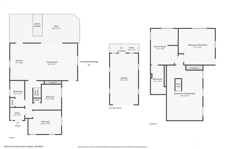 Rare Liberty Bay waterfront opportunity in the charming waterfront community of Keyport, WA with 60’ of medium-bank shoreline, private stairs with concrete treads to the water, with room to beach your kayaks and have ready access to your beach chairs. You can see all the way down Liberty Bay to Poulsbo from the top of the beach stairs. This 1934 home offers outstanding potential for renovation or reimagining in a highly desirable Keyport setting.Enjoy north and easterly views across Liberty Bay with large water views from the living room, kitchen and view decks. Main level includes 2 bedrooms and 1 bath, while the daylight basement offers additional finished space including water view bedroom with 2nd fireplace, office, ½ bath, utility room and shop space. It even has fiber internet with a variety of ISP providers for speed and performance options.Major systems already addressed with newer roof and updated gas furnace and water heater (2020). Composite decks enhance outdoor living. Detached garage with equal storage space below.Home is solid but mostly original and ready for updates—perfect for investors, builders, or buyers looking to build equity in a waterfront setting. Cash or conventional financing.