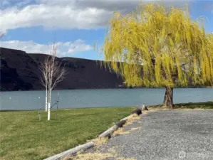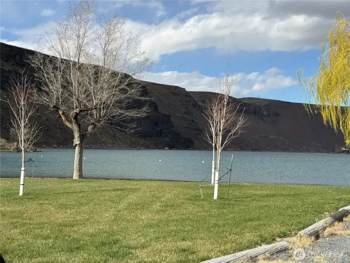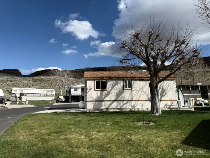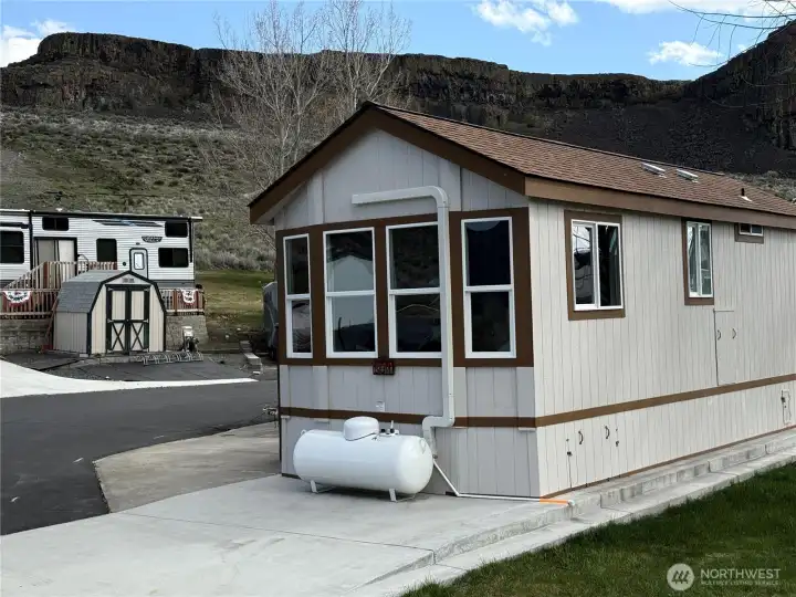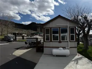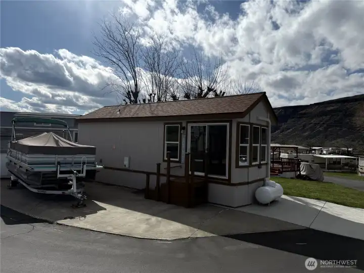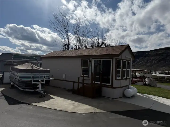 Rimrock Cove at Blue Lake offers a perfect combination of relaxation & entertainment. Embark on endless activities- an abundance of sunshine, some of the finest fishing, private beaches, boat moorage, swim areas & more. Choose year-round living, use as a summer home, or short-term rental for Friends & Family. This 1 bedroom tiny home feels brand new, built in 2024 it boasts all the luxuries for ample comfort. Modern kitchen with good counter space & lots of storage. Full Sized laundry machines and full bathroom. Oversized parking space with room for a boat/jet skis, your golf cart, and vehicle! Situated perfectly with mountain views and limited neighbors sitting on the corner! Everything you need to live long term or for vacation use!! Enjoy the beautiful drive up to the lake on the Coulee Corridor! Close to Sun Lakes, the Dry Falls & Lake Lenore Caves! Endless Summer Fun! It’s a rare find. Take a stroll down to the community beach, go for a short hike on nearby trails, go fishing on the boat or shore, or sit by your own private fire pit! Beautiful sunrises and sunsets in your own little bubble. Sellers have enjoyed this destination for years, now it’s time for you to make memories here!