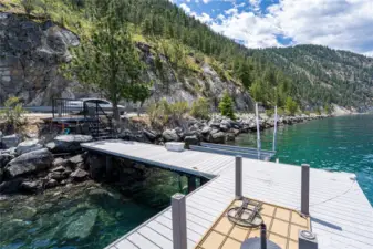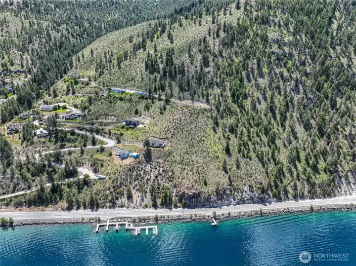Ideal private south shore waterfront location near Sunnybank with over 1400 ft. of medium bank waterfront and 20 timbered acres with an incredible level building site boasting panoramic views overlooking the deep blue waters of Lake Chelan. This close in south shore location floats above the lake with a cleared terraced bench site with power and a private well for your dream home. Enjoy full summertime sun at your building site and your private dock with a buoy and 8000 lb. boat lift. No HOA's and an end of the road location for complete solitude for your own piece of paradise.