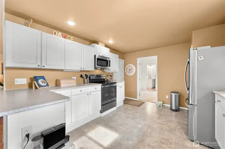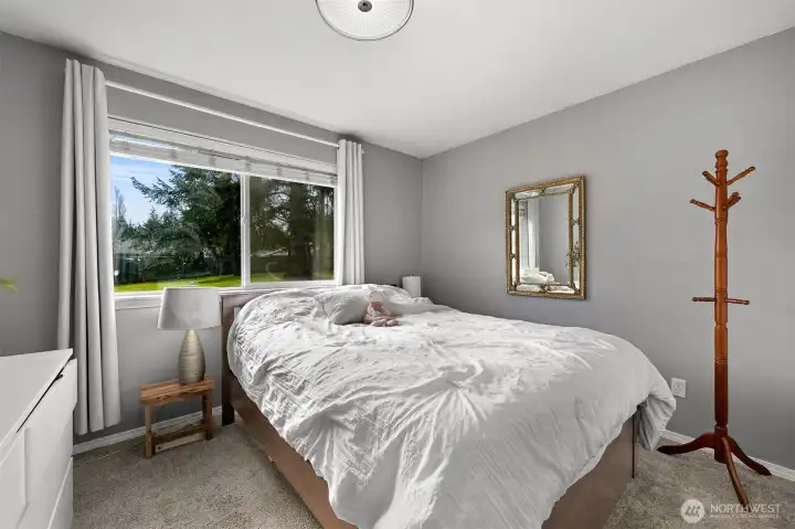 Light-filled and spacious, this 4-bedroom, 2-bath home offers comfortable single-level living on an expansive ~9,800 sq ft sun-filled lot in the sought-after Birch Bay Village community. Vaulted ceilings and bright living spaces create an open, welcoming atmosphere throughout. The thoughtful layout places the primary suite on the opposite side of the home from the other bedrooms, offering added privacy. The primary retreat includes an en suite bath, laundry, and a versatile flex space ideal for a home office, workout area, or creative studio, plus additional closet storage. Three additional bedrooms are located on the other wing of the home and share a full bath, providing flexible space for a variety of needs. The open living areas flow easily for everyday living and gatherings, while large windows invite natural light and showcase the sunny setting. Enjoy the benefits of living in Birch Bay Village with gated access and a variety of community amenities including a pool, clubhouse, boat launch, beach access, and playground. The generous lot offers room to relax, garden, or entertain, and the attached two-car garage adds convenience and storage along with an EV charger. A rare opportunity to enjoy spacious, easy living in a well-loved coastal community near the bay, recreation, and everyday amenities.
