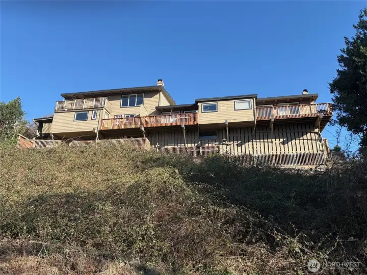 Great Arnold Hill location with sweeping city views. This well maintained building offers consistent rental income, with three 2 bedroom apartments plus 1 studio, offering a versatile unit mix apppealing to a wide tenant base. One of the larger units offers an EXCELLENT OPPORTUNITY for an owner-occupant. Each unit is equipped with its own mini split heat pump providing efficient year round heating and cooling. Each unit has their own electrical meters. With the owner covering water, sewer and garbage, this property is designed for ease of ownership. Convenient coin op Laundry room with sink and folding area. There are 5 parking spots: attached 4 car carport plus one off street parking. Ideally situated out of the flood zone.
