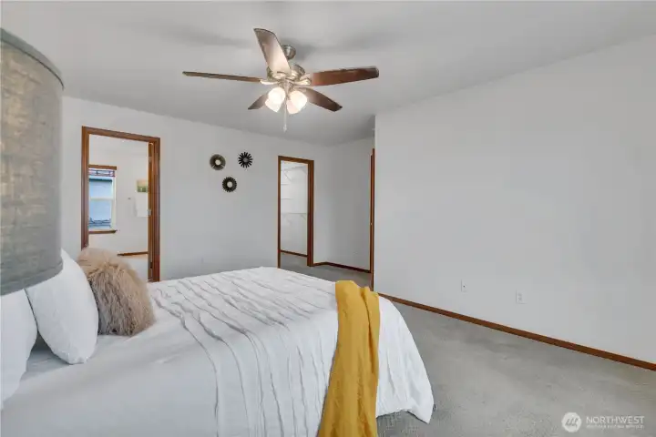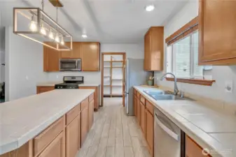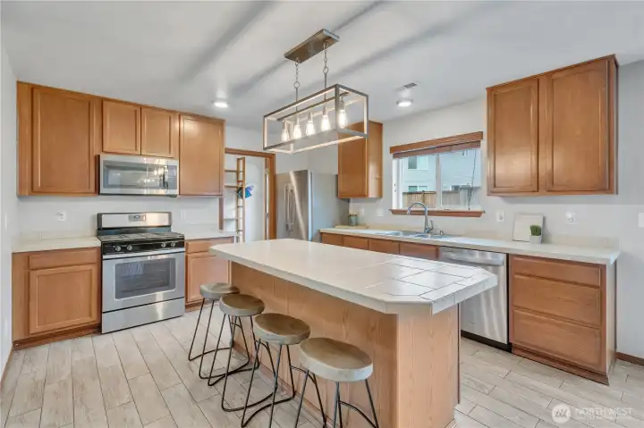 Welcome to this updated 3-bedroom, 3-bathroom home in Kentlake Highlands — 2,260 sq ft of open-concept living designed for real life. The kitchen impresses with stainless steel appliances, a large island, tile countertops, gas range, and an oversized pantry that would make Costco proud. The spacious primary suite features a double vanity, walk-in closet, and room to actually breathe. All three bedrooms include large walk-in closets — no fighting over storage here. A gas fireplace anchors the main living area, while a large upstairs family room and bonus playroom give everyone their own space. Step outside to a large fenced backyard — perfect place to entertain and toss the ball around. AC keeps you cool when summer finally shows up. Community offers walking trails & playgrounds to help you close those rings. Easy access to the lake boat launch, and the park is a short walk away. It is move-in ready and waiting.
