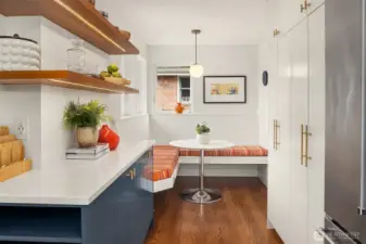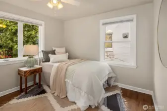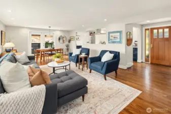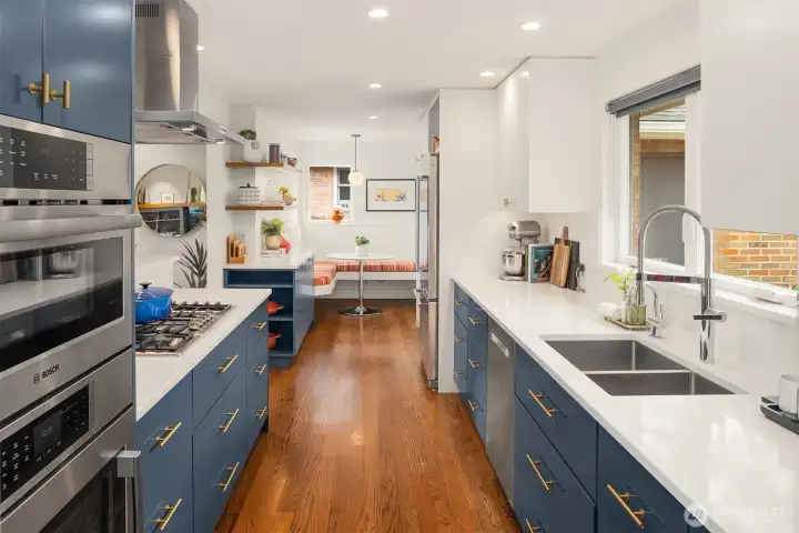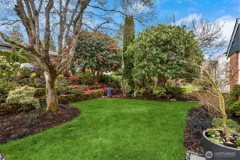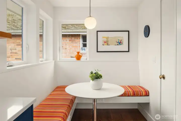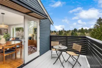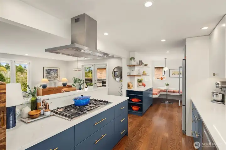 Inviting, updated, and ideally located—this delightful home blends comfort, style, and convenience in Laurelhurst. Professionally designed and landscaped, the front yard offers standout curb appeal with milled steel planters, seasonal color, and a private deck perfectly positioned for sunny southwest exposure and al fresco dining. Inside, light-filled living and dining spaces showcase a large window framing peaceful territorial views capturing seasonal colors. A cozy gas fireplace and French doors to a new deck create effortless indoor-outdoor flow. The remodeled kitchen shines with custom cabinetry, gas cooktop, double wall speed oven, and a built-in banquette—perfect for everyday living and entertaining. The main level features a spacious primary bedroom with dual closets and lovely outlooks, plus a second bedroom and full bath. Downstairs, a generous family room with gas fireplace opens to the backyard, second deck, and patio with evergreen views over neighboring Windermere. A newly finished laundry room with abundant storage, a storage room, an additional bedroom, full bath, and flexible office/bonus space complete the lower level. The terraced backyard offers room to garden, play, or relax. With A/C, earthquake retrofitting, and updated systems, this home is truly move-in ready. Just minutes to the Burke-Gilman Trail, Seattle Children’s, University Village, and UW—an unbeatable lifestyle location.
