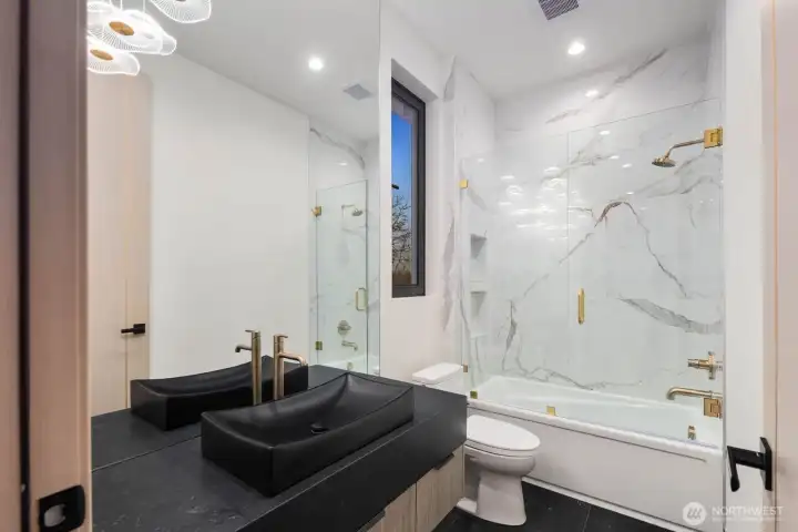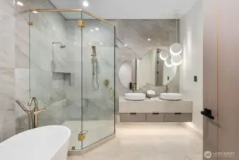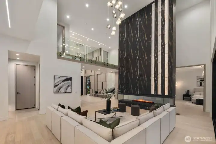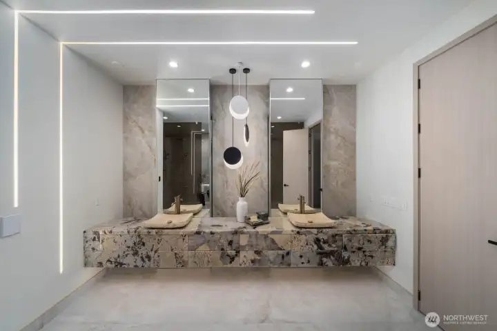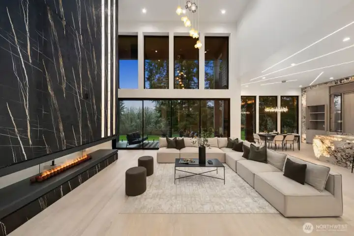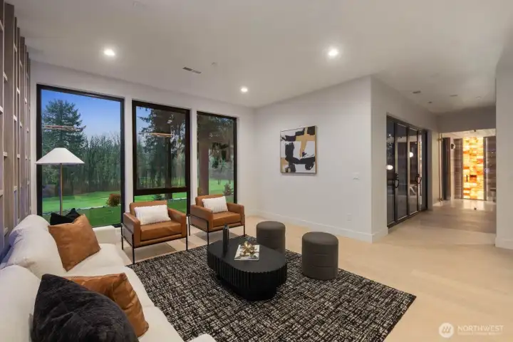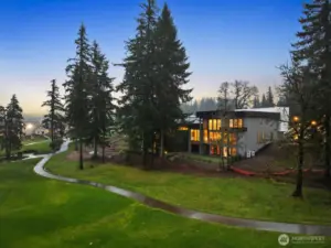 Custom residence in The Nines at Camas Meadows offering a lifestyle shaped by light, space, & direct access to Camas Meadows Golf Course from your backyard. Modern architecture meets warm textures as 21.5 ft ceilings, floating stairs, & triple pane windows create an elevated atmosphere. The Quartzite Patagonia kitchen w/ Bertazzoni suite anchors the main level, while the primary suite lives like a private retreat w/ floating tub, heated floors, & covered patio access. The lower level adds a wine wall, sauna, steam room, & 8 ft doors opening to the yard, plus a golf cart garage for instant course access. A rare blend of design, comfort, & resort-style living minutes from Vancouver & Portland. A home that defines elevated Camas living!