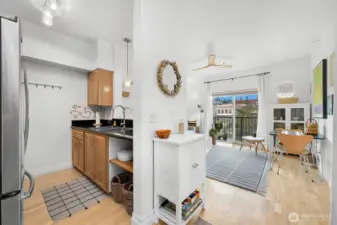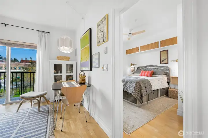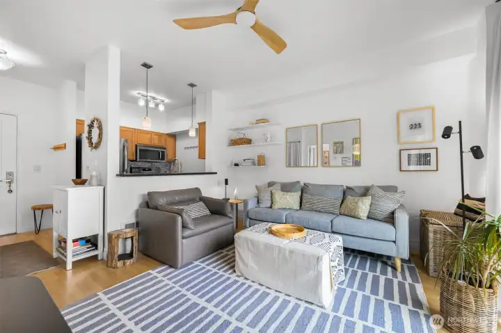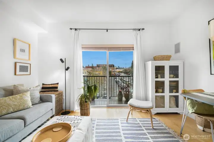 Charming one-bedroom in the heart of it all! Originally a studio, this thoughtfully updated condo now offers a defined one-bedroom layout for added comfort and functionality. Roll out of bed and walk to breakfast, grab a latte, and stroll through the quaint town of Fairhaven. A Stones Throw from many trails that access the waterfront, Fairhaven Park, the Chuckanuts and Boulevard Park all the way into downtown Bellingham. This quaint single-level condo has a special charm, featuring an open kitchen with granite countertops and stainless-steel appliances. The spacious full bathroom sits just off the bedroom with in unit washer and dryer. Bright and airy with your own balcony overlooking Fairhaven, plus beautiful hardwood floors and 9-ft ceilings throughout. Park your car in the common garage and enjoy a private storage space. This is urban living at its finest!