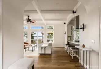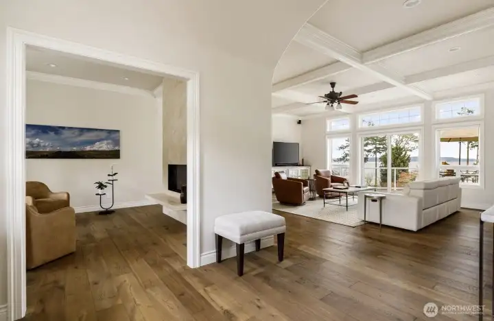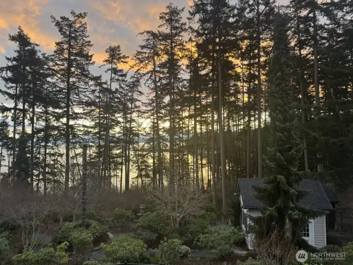 Discover a luxurious oasis where tranquility and elegance converge. Start each morning with awe-inspiring vistas of lush gardens, shimmering waters, and the radiant glow of Mt. Baker. Stroll among colorful blossoms, fruit-bearing trees, an artist’s studio, a totem pole, and welcoming outdoor areas. The spacious, light-filled living space features large windows, a stunning double-sided travertine fireplace, bespoke cabinetry, and premium appliances. Redesigned in 2023 by architect Stig Carlson and designer Lezlie Trujillo, the home also boasts a new roof and exterior paint, a whole-house generator, Starlink connectivity, and a private lower-level apartment, offering both comfort and flexibility.