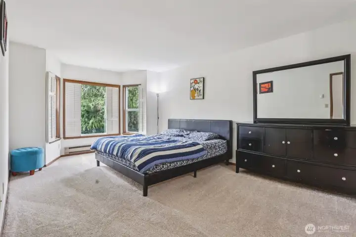 Enjoy lake-view living in this beautifully updated 2 bed, 2 bath condo with views of Lake Sammamish from both the balcony and dining nook. The light-filled living room is anchored by a cozy wood-burning fireplace, creating a warm and inviting space. The updated kitchen features granite countertops, sleek black appliances, and timeless oak cabinetry that flows throughout the home. Spacious bedrooms offer comfort and functionality, while the primary suite showcases a charming bay window with shutters, dual vanities, dual closets, and a walk-in shower. Thoughtful updates blend seamlessly with classic design touches. Step outside to take in evening sunsets or explore nearby lake access and outdoor recreation. Complete with dedicated parking, this home offers both convenience and a serene setting.