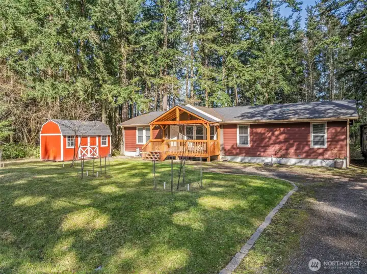 Rural island living yet just minutes from amenities! This one owner home is located just outside of Oak Harbor and offers a perfect blend of comfort and outdoor living. Nestled on a spacious, wooded lot, the property features a lush yard with fruit trees and a cozy outdoor fire pit, ideal for Whidbey Island evenings. Storage is a breeze with the oversized outdoor storage shed, perfect for tools or hobbies. Enjoy a spacious layout with 2 bedrooms, 2 living rooms, an office, and a stunning kitchen. Located minutes from NAS Whidbey and local parks, this gem provides a serene escape while keeping you close to city amenities.
