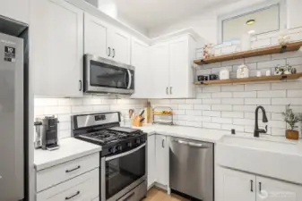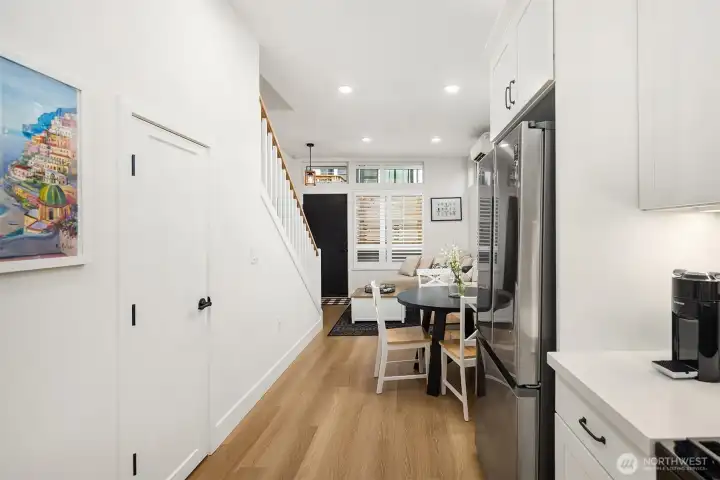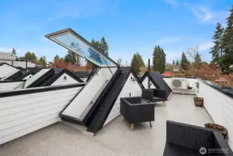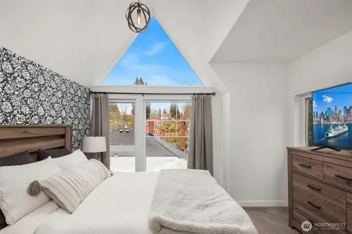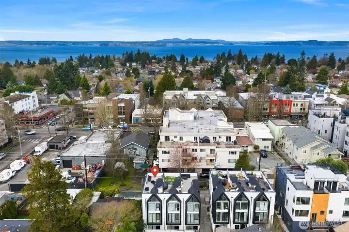 Experience elevated West Seattle living at this stunning newer townhome just steps from vibrant Morgan Junction. Showcasing a distinctive modern farmhouse design, this 3 bedroom, 2.5 bath residence blends style and comfort with thoughtful craftsmanship throughout. The open-concept main floor is perfect for game night, featuring quartz countertops, a farmhouse sink, stainless steel appliances, and a gas range, all illuminated by abundant natural light. Upstairs, two spacious bedrooms and a full bath offer flexibility and brightness, while the entire top floor is dedicated to a luxurious primary suite with vaulted ceilings, a walk-in closet, and a spa-inspired bath complete with double vanity and an oversized tiled walk-in shower. Custom window treatments throughout. Enjoy year-round comfort with energy-efficient mini-split heating and cooling, plus tankless hot water. Unwind or entertain on your private rooftop deck with territorial views. Dedicated parking. Ideally located just blocks from shops, dining, parks, and beaches, this home delivers the perfect balance of urban convenience and Pacific Northwest charm.