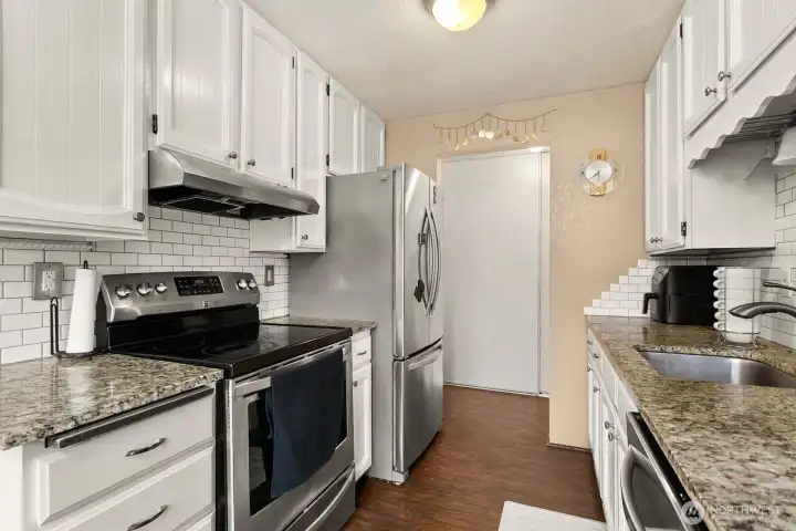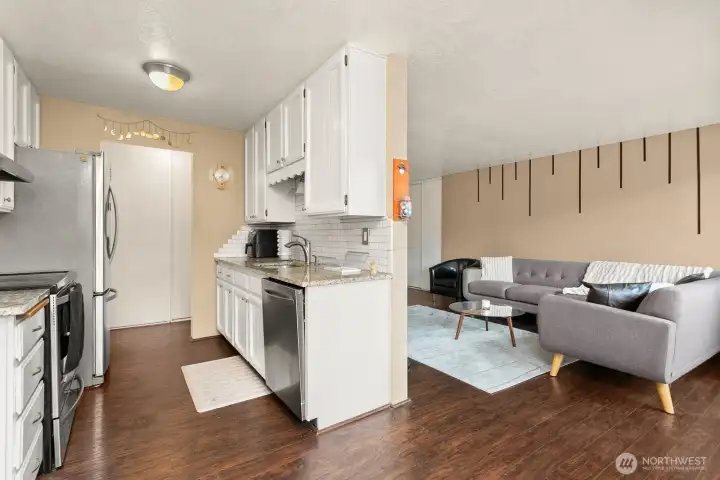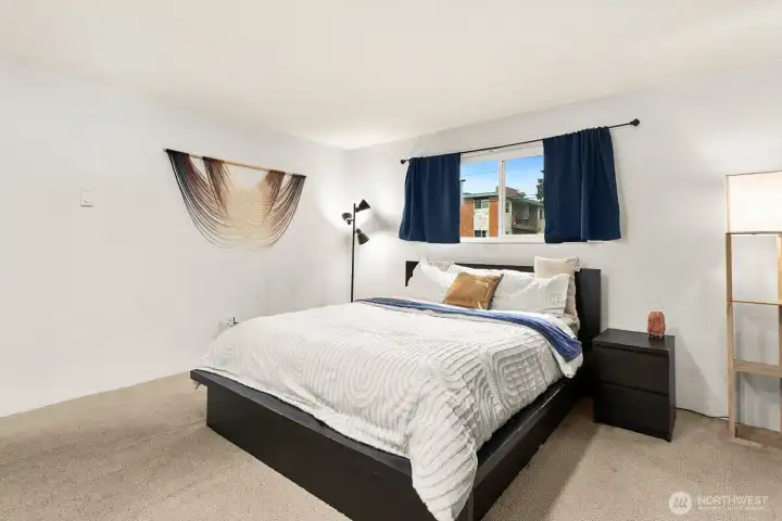 Welcome to the 59th Street Condos! This cozy community of twelve condominium units is tucked perfectly into the heart of Ballard, where there are many nearby transit options, and it is proximate to so many restaurants, shops, parks, services, and entertainment, and more! This gorgeous north-facing home overlooks vibrant 59th Street. The large windows bathe the unit in ambient natural light. It has everything you need: Spacious living room upon entry, perfect for Netflix and chill; Updated kitchen with modern stainless appliances and granite counters; Dining room perfectly-sized for a four-top; Covered elevated deck on which to enjoying morning coffee or read a book; Updated bathroom with white quartz counter and marble pattern tile floor; Laundry in-unit; Storage unit in basement for those items you don’t need on a daily basis; and one dedicated off-street parking space. There's also a guest suite available to rent when you have visitors. No rental cap. Low HOA dues. Welcome home!