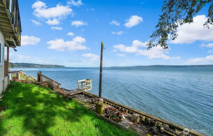 A rare Vashon waterfront opportunity with sweeping east-facing views across the East Passage—where ferries, cargo ships, fishing boats, and passing orcas animate the horizon. Eagles soar overhead, seabirds gather along the shore, and beachcombing and birdwatching unfold just steps from the home. With 50 feet of low-bank beachfront on Hawthorne Lane, this property offers exceptional privacy, tranquility, and a front-row seat to Puget Sound’s ever-changing scenery. The existing 2-bedroom, 2-bathroom home presents a substantial renovation or reimagination opportunity, ideal for a buyer ready to undertake a transformative project. Pre-inspection, approved new septic design, completed survey, and boundary line adjustments provide valuable groundwork for moving forward with confidence. The current structure features an open-concept layout, walls of windows oriented to the views, a pellet stove, and an unfinished 240 sq ft workshop or studio beneath the deck—also with waterfront outlooks and ready for reinvention. Just minutes to town and the ferry, this is a compelling chance to create a custom waterfront retreat in one of Vashon’s most scenic and dynamic shoreline settings—where vision, craftsmanship, and setting come together to shape something truly special.