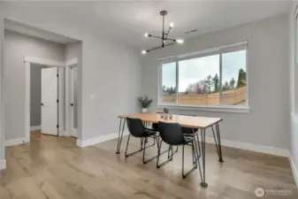 Better than new and thoughtfully upgraded, this stunning 5-bedroom, 3.5-bath home with a 3-car garage located at the end of a cul-de-sac, offers style, space, and functionality. Lightly lived in for just one year, it’s move-in ready with premium enhancements already complete. The main floor features a private en-suite bedroom with its own bath—ideal for multigenerational living or a home office. The expansive great room flows seamlessly into the chef’s kitchen with an oversized island, large dining area, and walk-in pantry—perfect for entertaining and everyday living. Upstairs, enjoy a versatile loft, a serene primary suite with a luxurious 5-piece bath and spacious walk-in closet, plus generously sized secondary bedrooms. Step outside to the extended covered patio overlooking a large, fully fenced backyard—perfect for relaxing or hosting gatherings. Upgrades include blinds throughout (including sliders), all appliances, upgraded Mohawk Revwood Plus waterproof laminate flooring, enhanced baseboards, Sherwin-Williams interior paint, a 220/240V Dimplex Ignite fireplace with custom shiplap wall, enlarged kitchen island with granite composite sink, black hardware and fixtures throughout, low-maintenance front yard landscaping, and added garage outlets for extra functionality. A rare opportunity to own a truly turnkey home with designer finishes already in place!