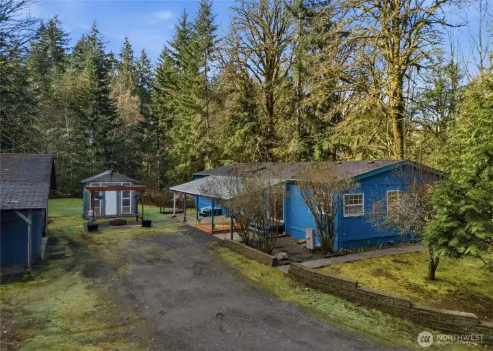 Tucked away at the end of a quiet road in sought-after Olalla, this impeccably maintained double-wide home on 3+ acres offers the privacy and serenity you’ve been searching for. Surrounded by lush greenery, mature fruit trees, and a charming greenhouse, this property is a dream for gardeners and those craving a peaceful, rural lifestyle. Inside, a thoughtfully designed layout, upgrades and skylights provide both comfort and functionality. The spacious primary suite is privately situated on one end of the home, featuring a beautifully tiled custom walk-in shower and French doors leading into the ensuite bath. On the opposite wing, three additional bedrooms and a full bath create the perfect setup for guests or household flexibility. Enjoy multiple living spaces with two generous living rooms, a cozy wood-burning fireplace, and an open-concept kitchen ideal for gathering and entertaining. House was built with 2x6 outer walls providing superior insulation, allowing for higher energy efficiency. Conveniently located just 5 minutes to Highway 16, 10 minutes to shopping, and under 10 miles to the nearest hospital—this private retreat truly offers the best of both worlds.