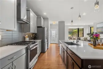 Fantastic townhome in the desirable Lakehouse community centrally located in the heart of Newcastle. Lives large like a single family home. Experience urban conveniences in a suburban area with this townhome that is steps away from the Newcastle Library, shops, grocery stores, restaurants, and scenic Lake Boren Park. Move in ready and offers the perfect blend of convenience and tranquility. Thoughtfully maintained featuring an open-concept floor plan with modern finishes, tall ceilings, engineered hardwood floors both upstairs and the main level, quartz countertops, stainless steel appliances, full-size side-by-side washer and dryer, plush carpeting, tankless water heater, and air conditioning for year-round comfort. Enjoy the privacy of a desirable end unit plus a spacious detached two-car garage separated by your own private backyard ideal for gardening and bbq'ing. Well-run HOA, and zoned to award winning Issaquah Schools. A rare resale opportunity to own a townhome in this community.