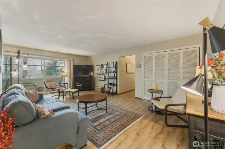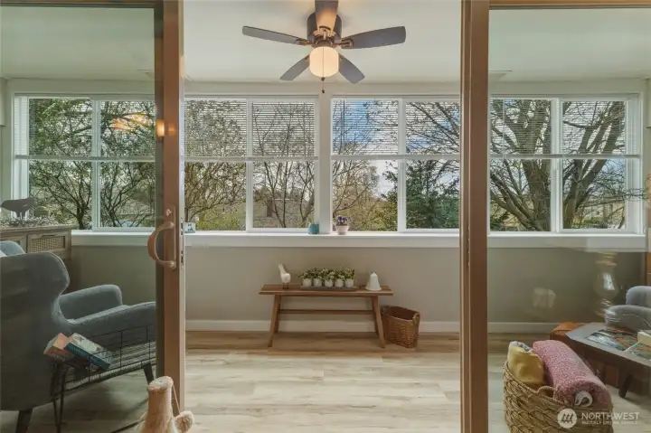 Tranquil living awaits in the desirable mid-century inspired Trees Condo Complex, just a few blocks from downtown! This second-floor unit features an open-concept living, kitchen, and dining area, creating a bright and inviting space for everyday living.The balcony has been thoughtfully enclosed to form a cozy sunroom retreat, offering a magical treehouse-like feel surrounded by mature greenery—perfect for relaxing year-round. This 2-bedroom, 1-bath condo boasts a fantastic location and access to complex amenities including a pool, beautifully manicured grounds, covered parking, additional storage, and convenient laundry via in unit hook-ups or just down the hall. Thoughtful updates include LVP flooring and updated windows throughout, a refreshed kitchen, fresh interior paint, and top-down blinds in the living room. Ideal as a primary residence, second home, or wine country getaway, this peaceful and private setting blends charm, comfort, and convenience. Welcome home!